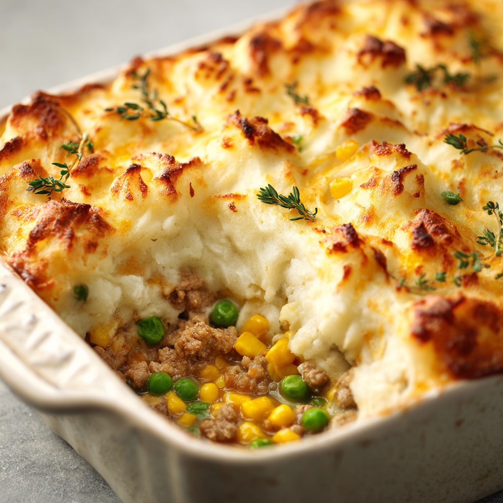 Mashed potatoes (or cauliflower for a lighter option) create the classic topping.