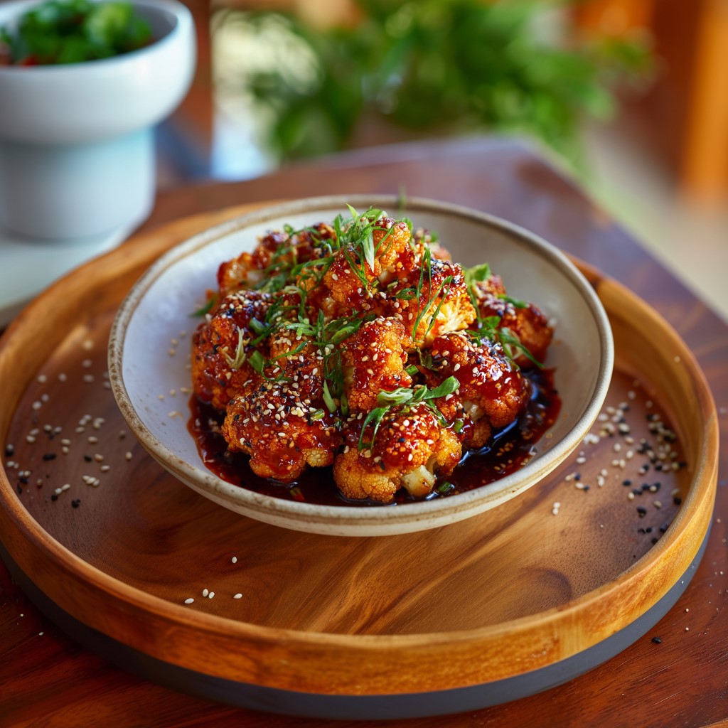 There’s something irresistible about crispy roasted cauliflower coated in a sweet, spicy, and savory glaze.