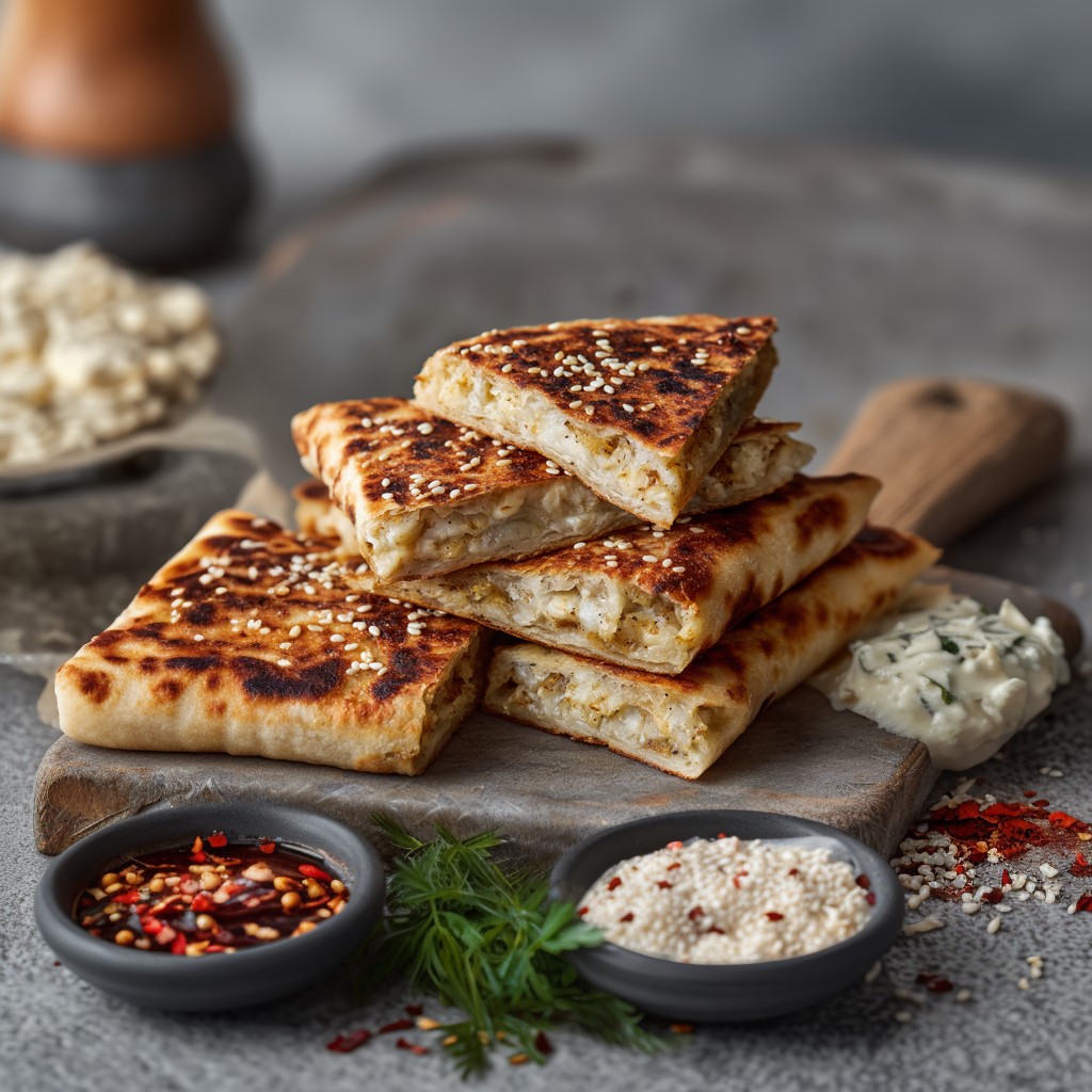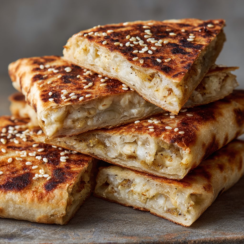 Unlike the Mexican quesadilla, this version is a rich, buttery pound cake with a subtle cheesy note and a golden sesame seed crust.